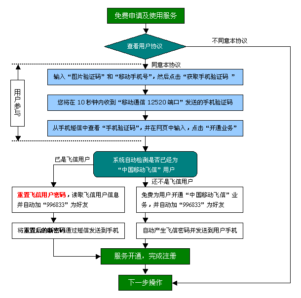 注:用戶(hù)可根據(jù)重置或新產(chǎn)生的飛信密碼,登錄進(jìn)飛信客戶(hù)端修改密碼。