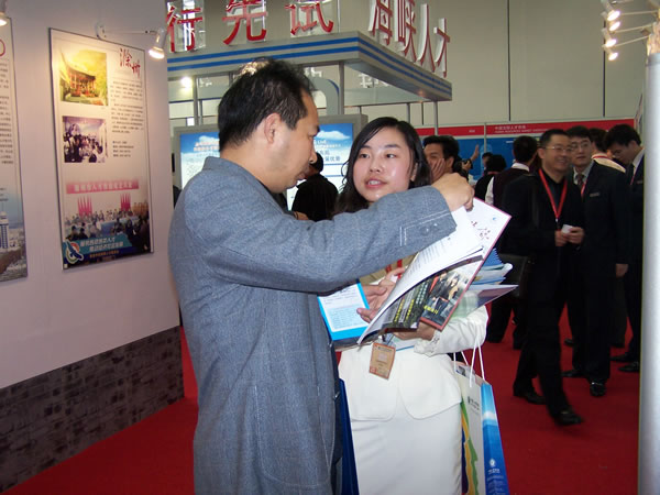 由中國人才交流協(xié)會、上海市人事局和浦東新區(qū)人民政府主辦的2007中國人才服務(wù)業(yè)博覽會于2007年11月15-16日在上海浦東展覽館舉行,中共中央政治局委員、上海市委書記俞正聲出席了開幕儀式并宣布開幕,中組部副部長、人事部部長尹蔚民,上海市委副書記、市長韓正到會致詞。眉州人才市場由分管領(lǐng)導(dǎo)親自帶隊(duì)參會,與多家國家級、省級人才市場親切交流,并達(dá)成一定的網(wǎng)上交流等合作意向。